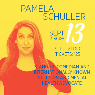 For UJA 2018, join us for this delightful and insightful community event featuring the incomparable Pamela Schuller - Stand-up Comedienne and Disability Advocate. Thursday September 13 I 7:30 pm I Beth Tzdec Congregation.